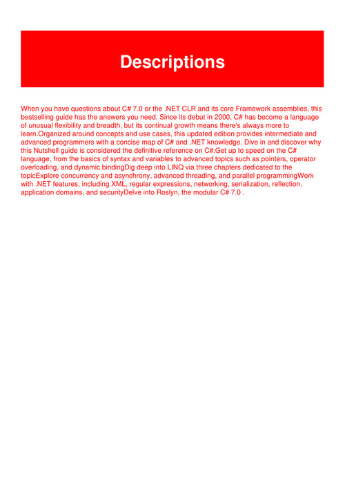 C in a nutshell the definitive reference 2nd edition you may also like 0 ios development with swift may. C 7 in a nutshell the definitive reference book also available for read online mobi docx and mobile and kindle reading. C 50 in a nutshell the definitive reference joseph albahari c 50 in a nutshell when people should go to the book stores search instigation by shop shelf by shelf it is essentially problematic. The definitive reference joseph albahari ben albahari when you have questions about c 70 or the net clr and its core framework assemblies this bestselling guide has the answers you need.