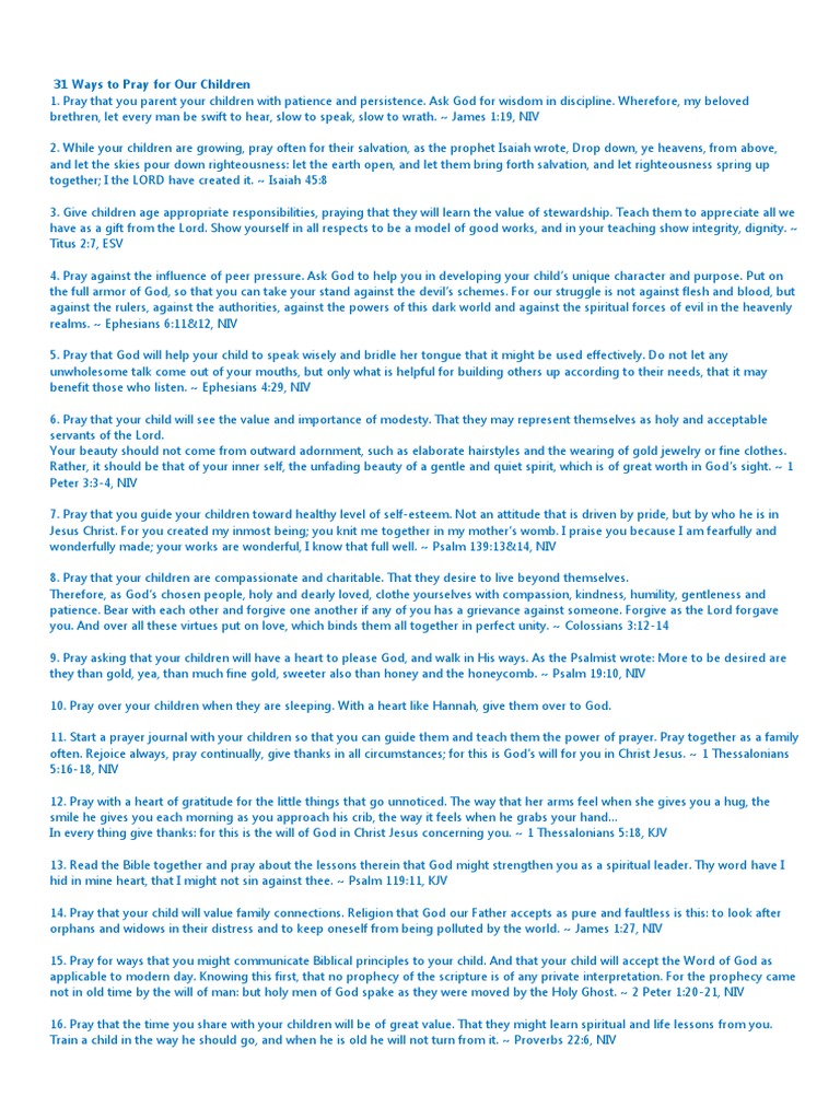 31 Ways To Pray For Our Children Armor Of God Prayer