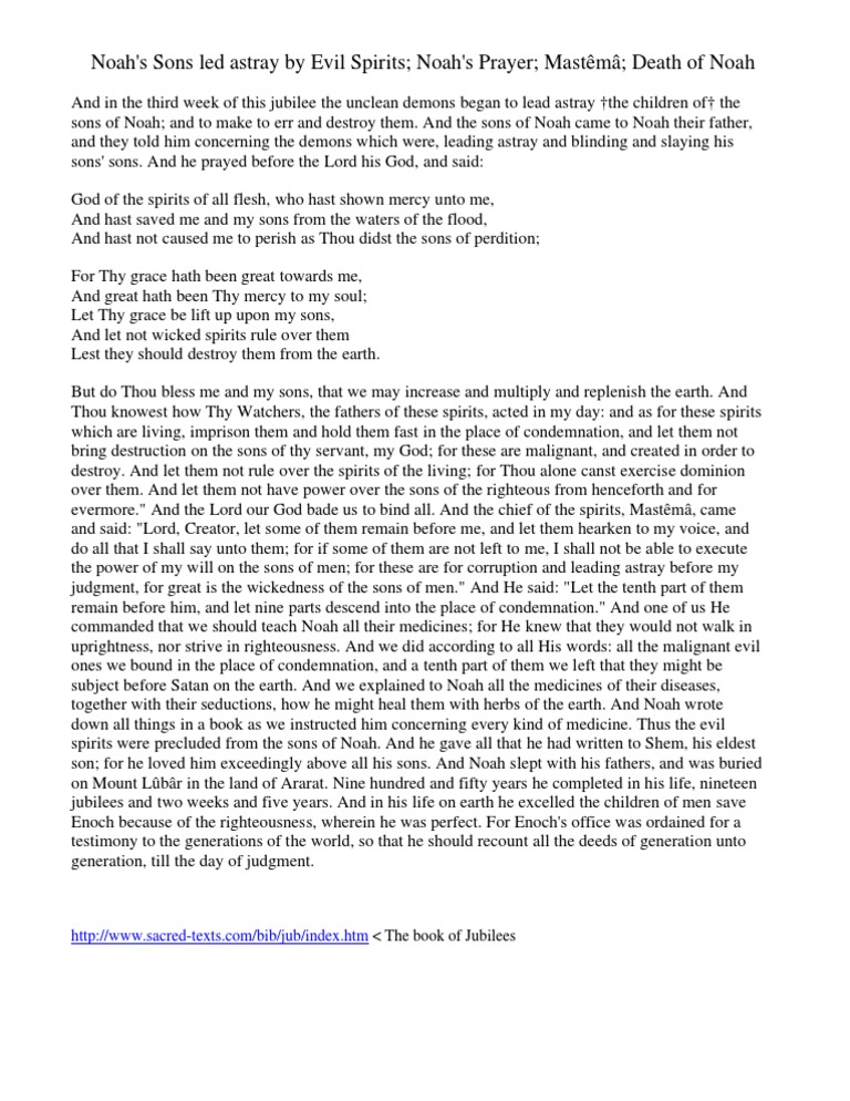 Noah S Sons Led Astray By Evil Spirits Noah S Prayer Mastema